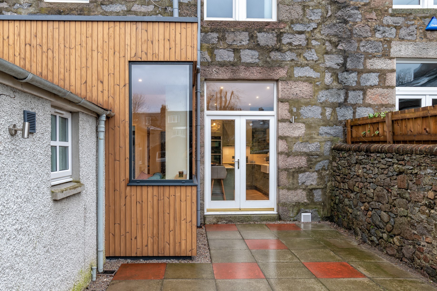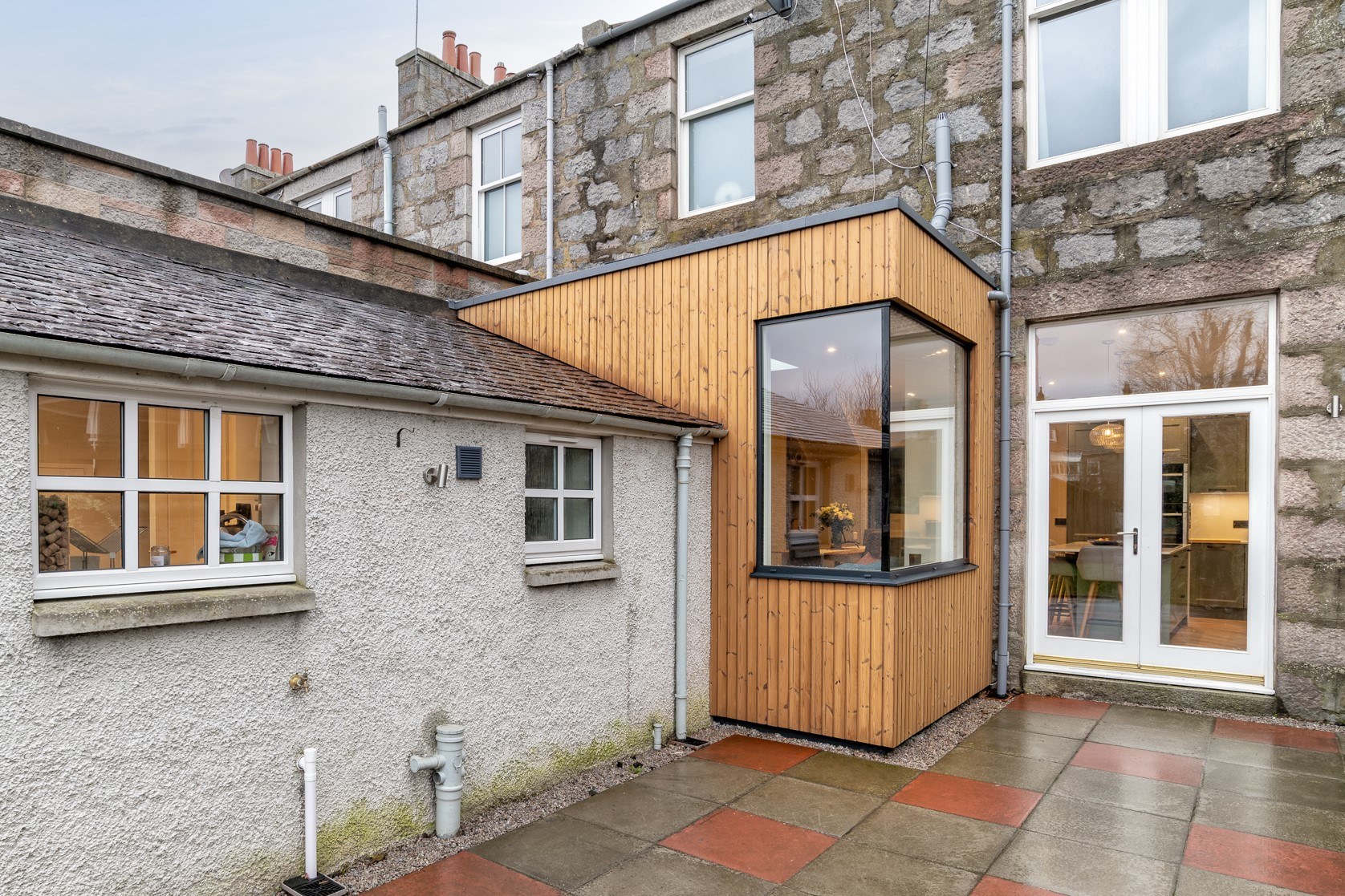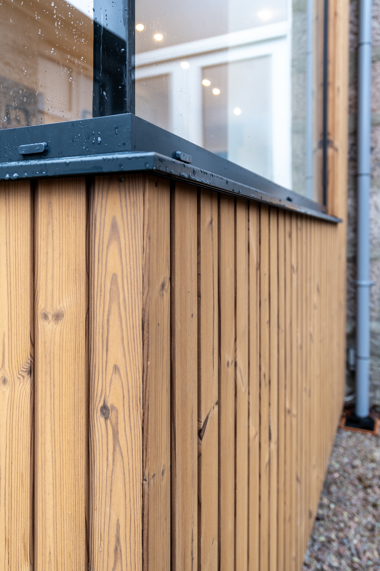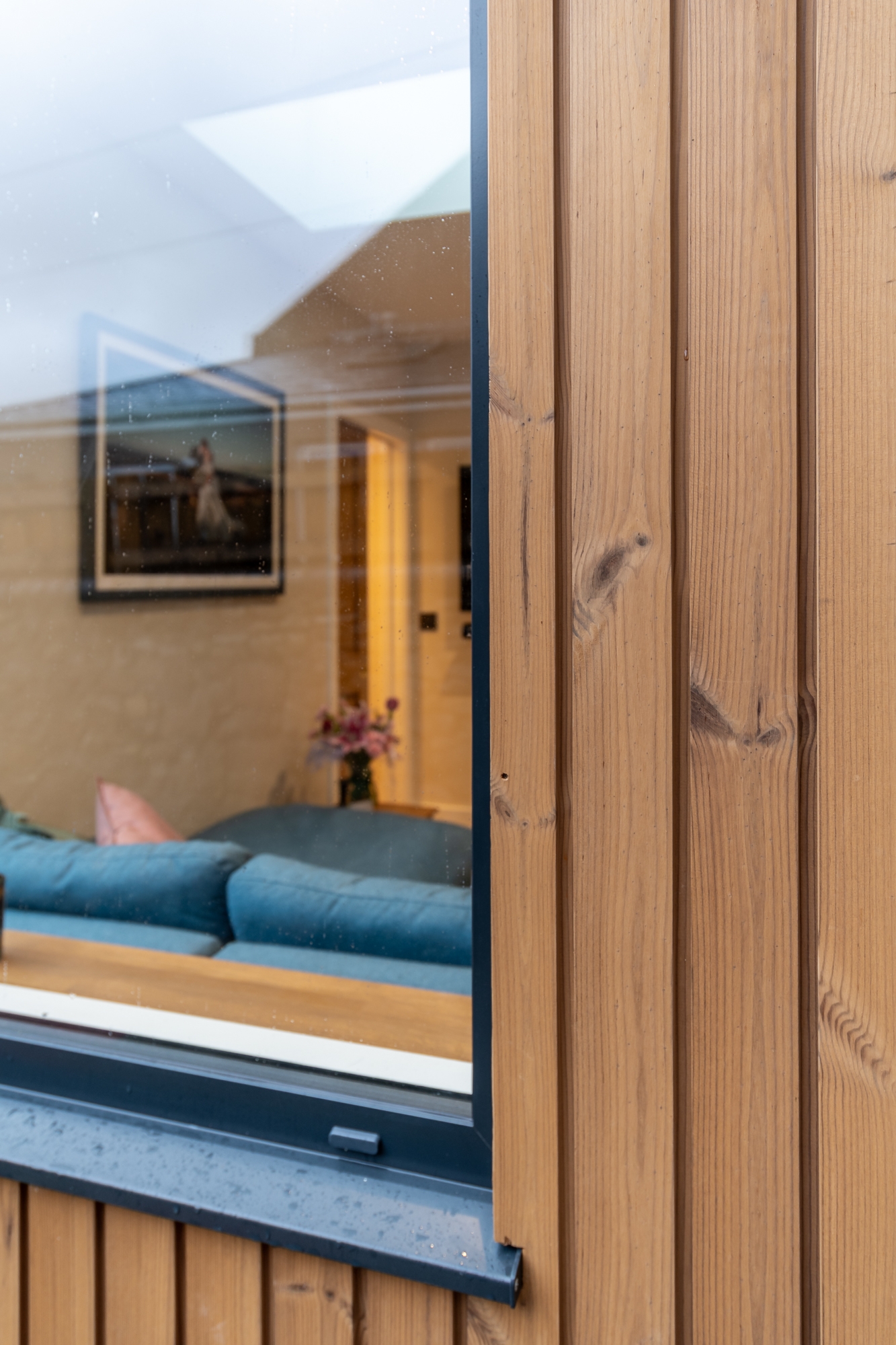 Externally, the extension was clad in timber with black window frames, creating a clean modern aesthetic.