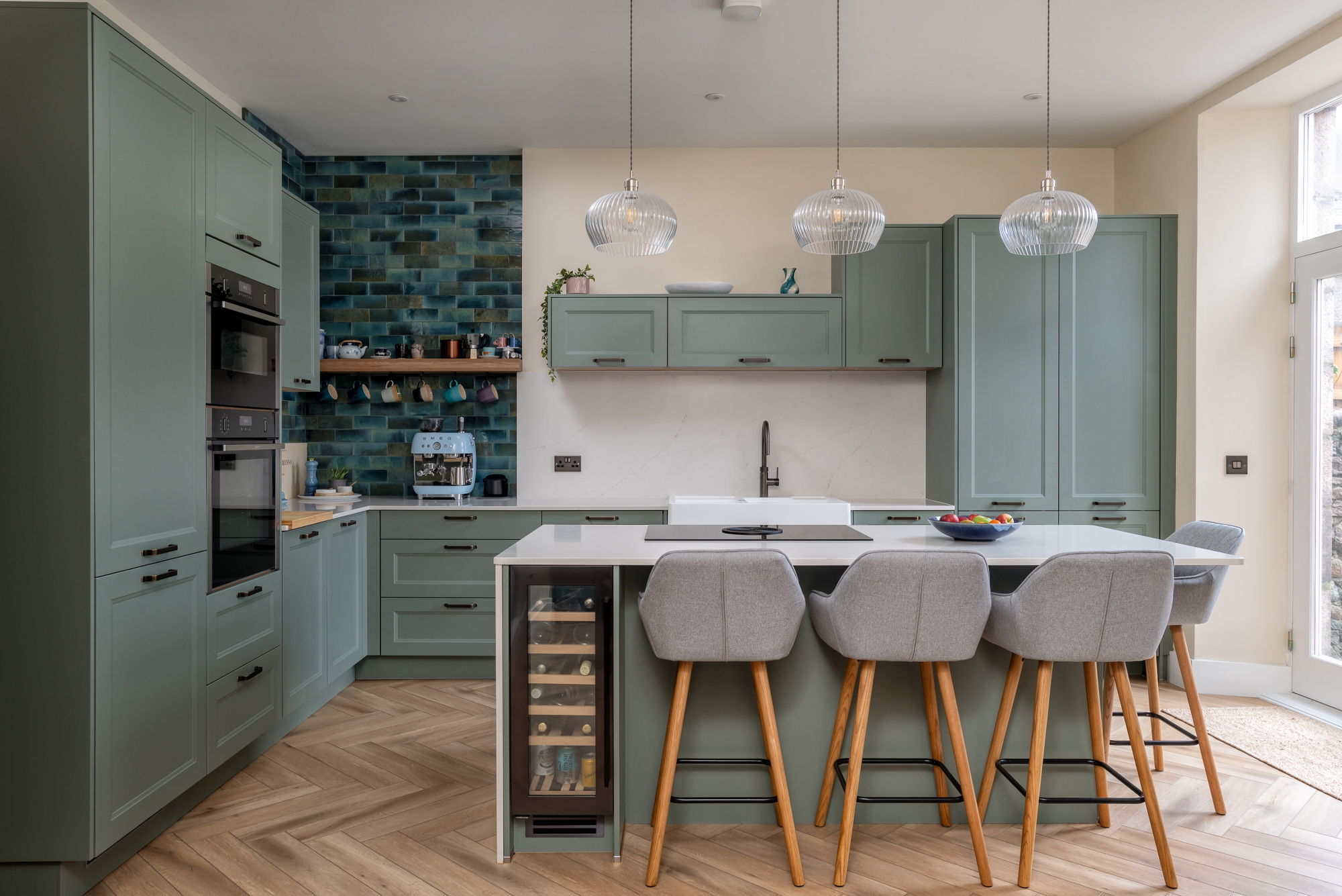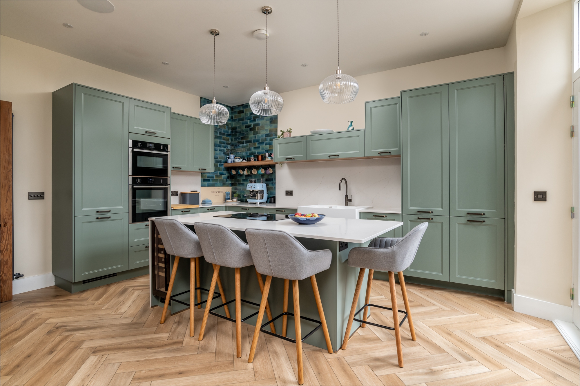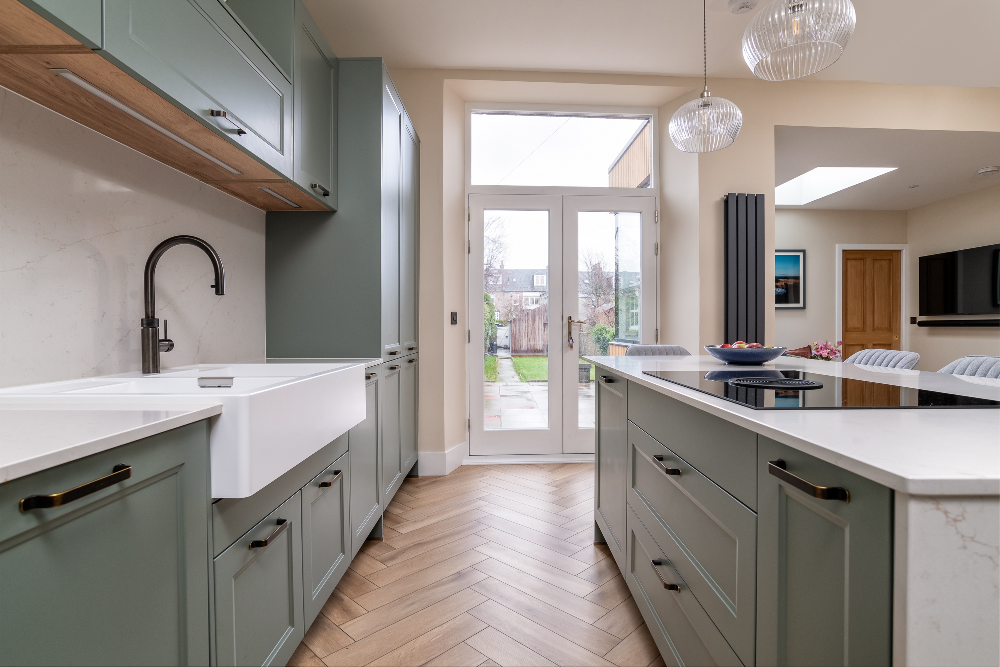 A new kitchen, with central island, was fitted in what was the existing Dining space, with the wall removed to allow for the Kitchen and Dining space to function as a modern open plan space.