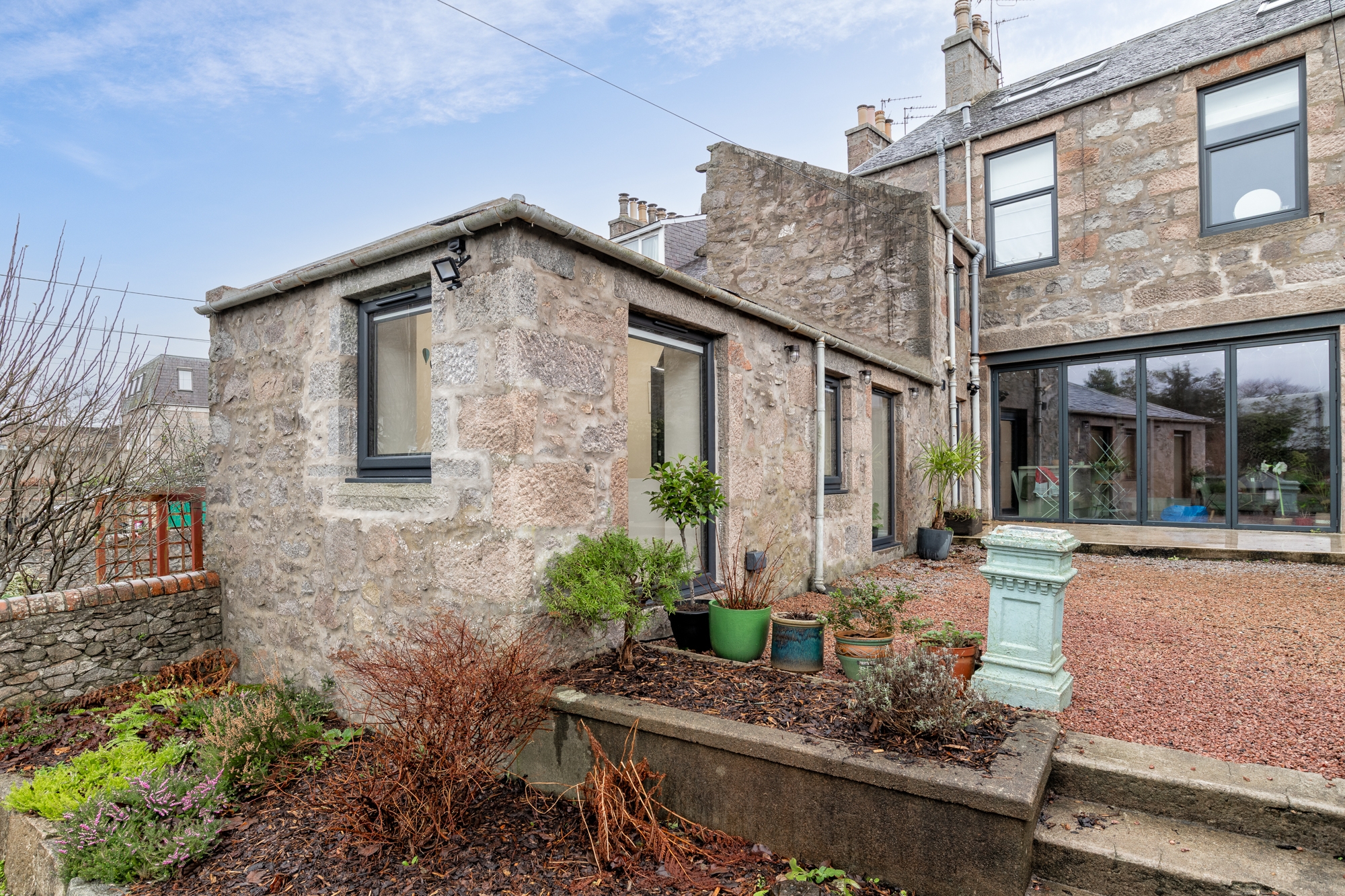 The existing outbuilding and Utility space was stripped back to the granite, to allow for a new floor slab, insulated walls, heating, and decoration throughout. Knocking through an existing store allowed for the creation of an additional living space, with a new window opening formed to provide a view over the garden.