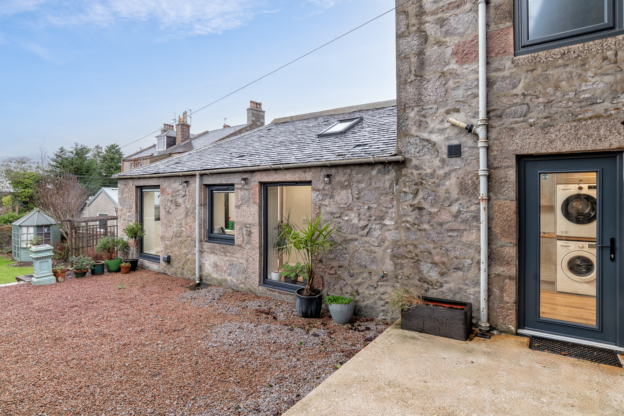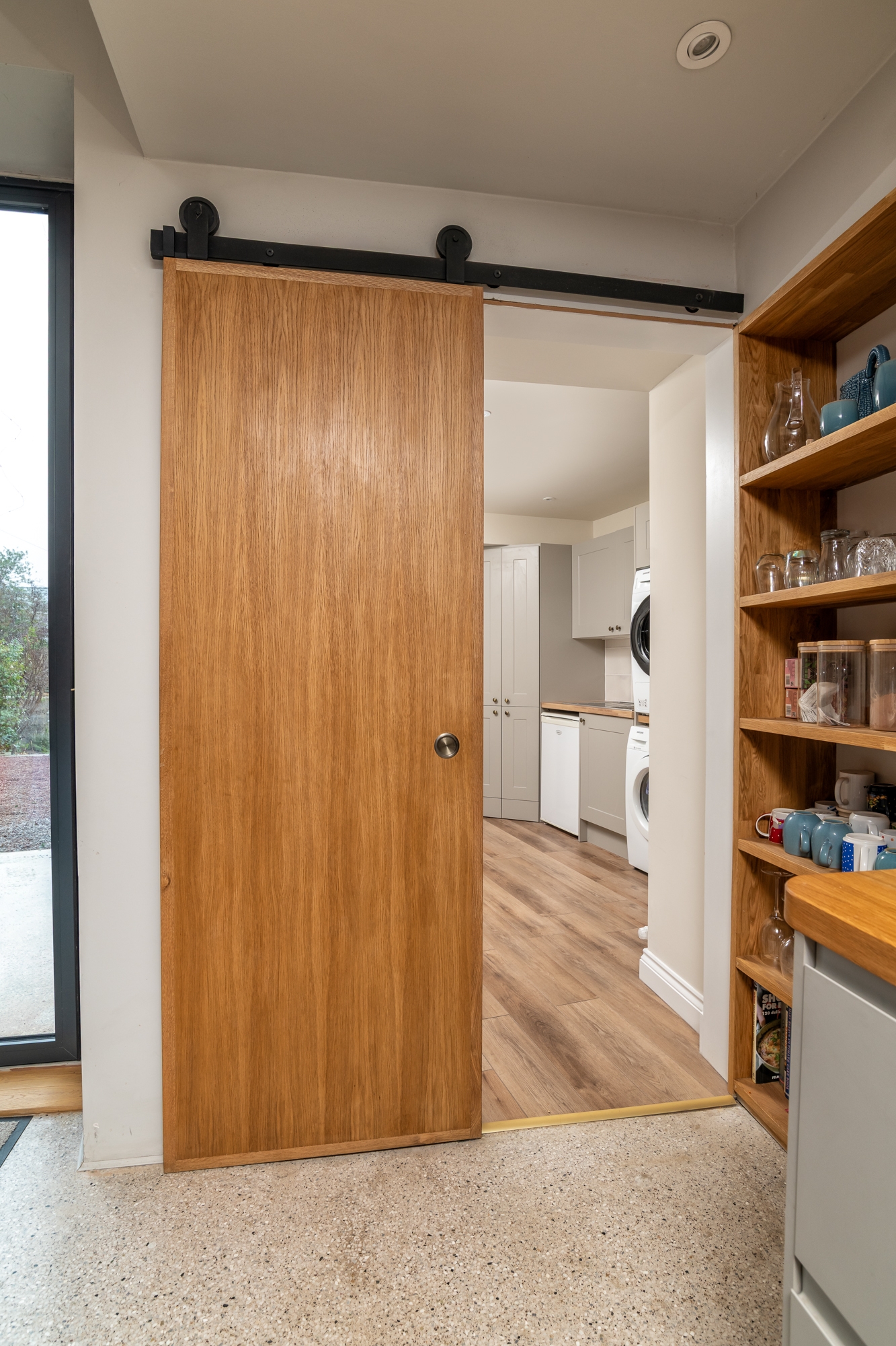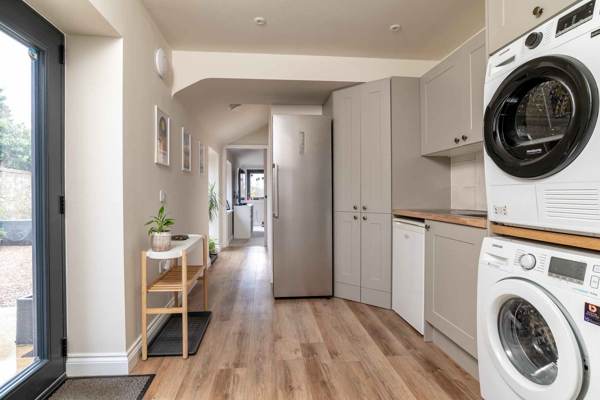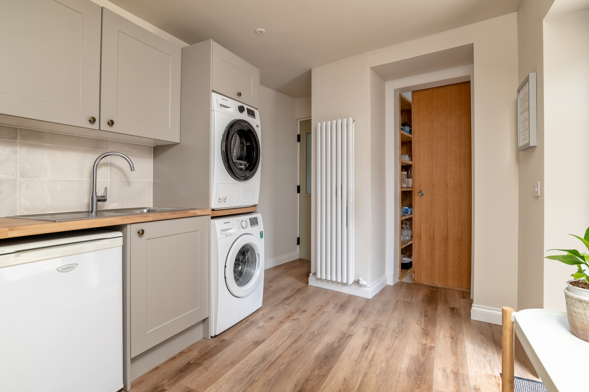 The existing Utility, WC and former Kitchen were removed, and internal partitions were formed to create a new Shower Room and Utility. A new external door, windows and rooflights were added to create a fully insulated envelope.
