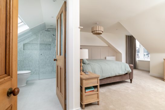 In the loft, the space was stripped out, and a new Stair was formed to access the space. Internal partitions were formed to create space for a Stunning Master Suite, with En-suite and Dressing space. New rooflights were added to allow natural daylight into the spaces and insulation was added to create a modern, comfortable space.